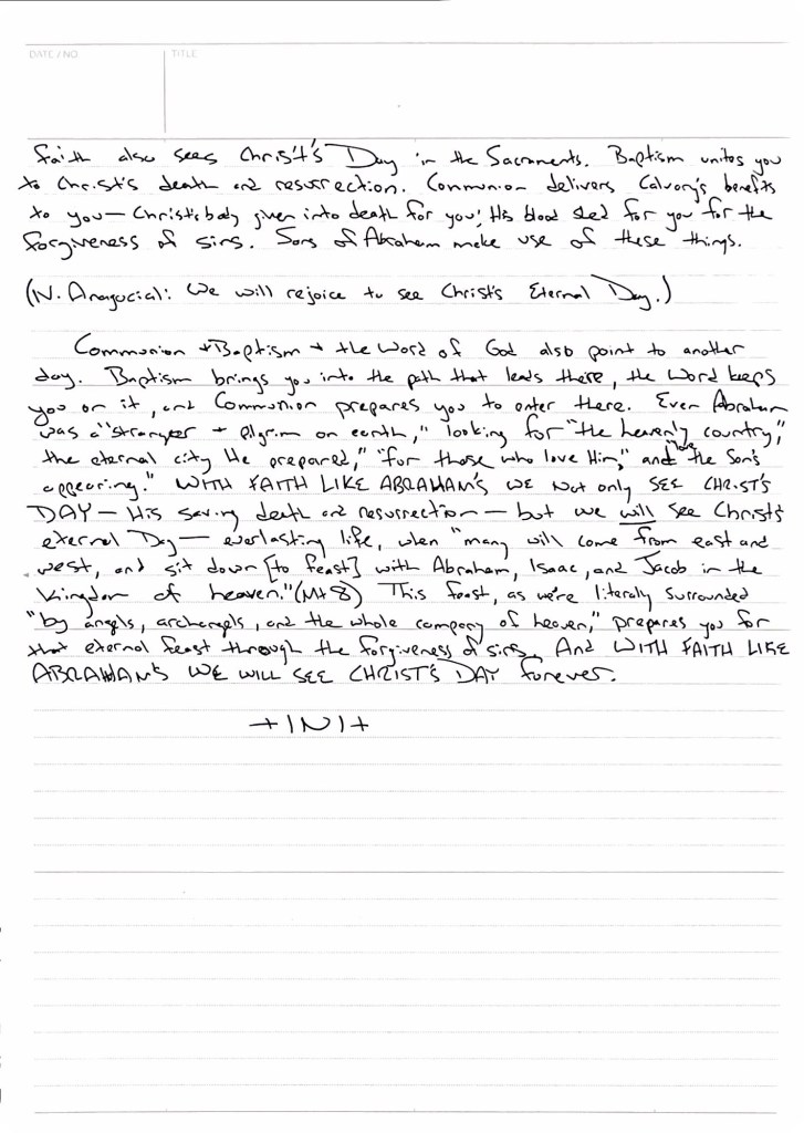 April 6, 2025December 4, 2025Rev. Aaron T. FenkerLeave a Comment on Lent 5—Judica 2025 (Gen 22,1–14; Jn 8, 42–59) Lent 5—Judica 2025 (Gen 22,1–14; Jn 8, 42–59) Artwork by FullofEyes Audio: iTunes | Spotify WITH FAITH LIKE ABRAHAM’S WE SEE CHRIST’S DAY. Share this: Share on X (Opens in new window) X Share on Facebook (Opens in new window) Facebook Like Loading... Related